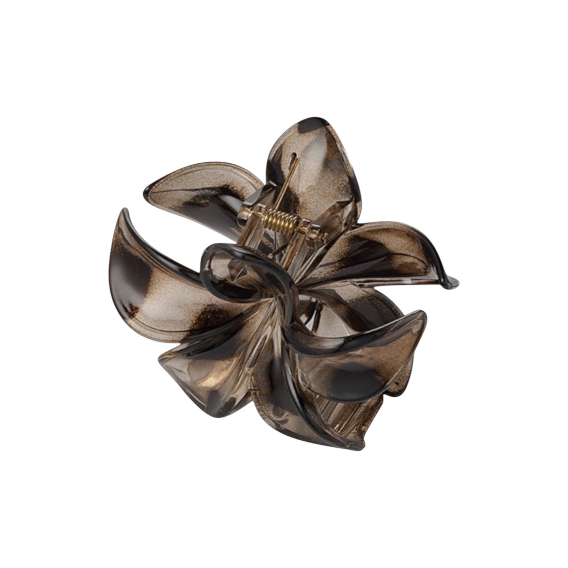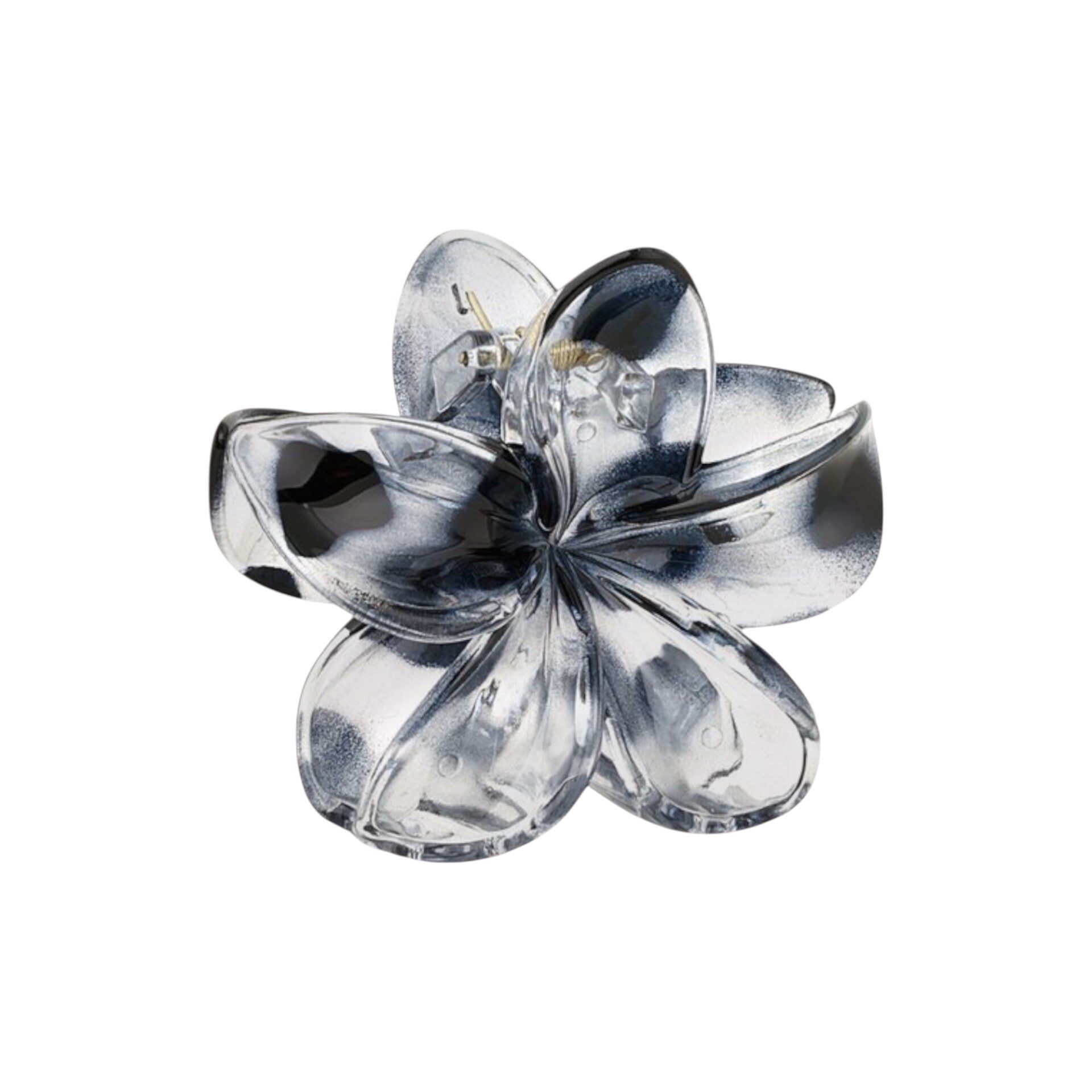 • Diese sommerliche Haarspange hat die Form einer Hawaiiblume und einen türkisfarbenen Aufdruck.